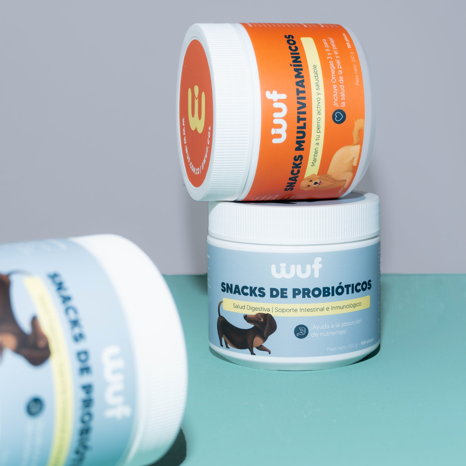 Los Snacks Probióticos WUF están diseñados para mejorar la digestión, fortalecer las defensas y mantener el bienestar general de tu perro.